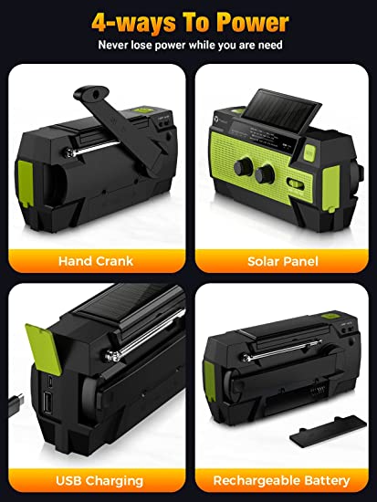 The ability to use the Radio’s hand crack keeps you in power. Some models allow you to use them to charge small electronics such as your phone, portable rechargeable fans and other needed small items.